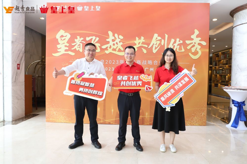2023年9月4日,皇上皇2023年经销商战略合作会在从化举行,30余家重要经销商客户齐聚一堂,共襄未来发展。越秀农牧食品董事长程九洲、副总经理易聪、总经理助理逄淑媛,皇上皇食品公司经营班子、相关部门负责人及业务骨干参会。