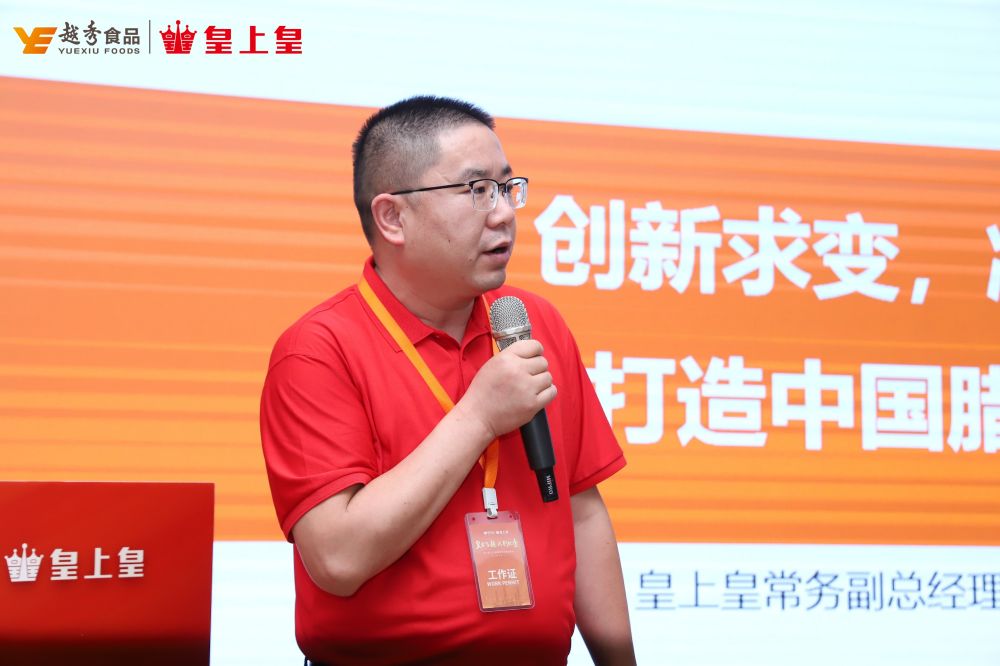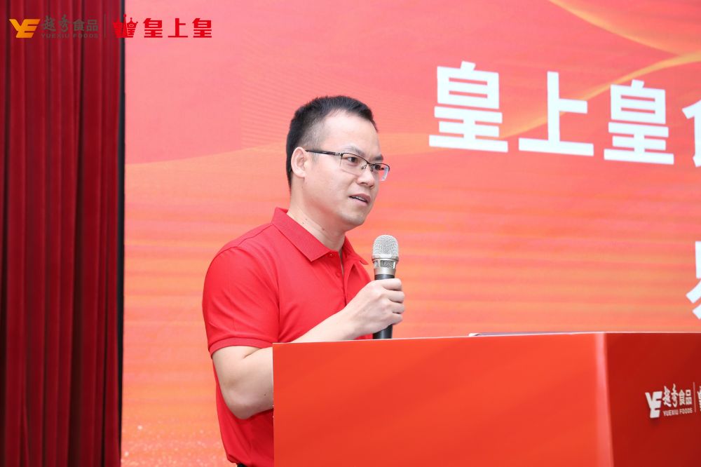 公司董事长易聪深刻剖析了行业发展趋势,从品牌影响力、研发创新力、团队战斗力、渠道穿透力等方面,向经销商客户全面展示了皇上皇公司的优势与实力。他坚信,皇上皇作为拥有83年历史的广式腊味领导品牌和行业标杆,长期保持着先进的生产工艺、严格的品质把控,加之业内多元的产品线和营销渠道,我们有信心将市场做大做强,和广大的经销商客户发展共赢,让国企老字号品牌焕发新活力,用三年时间实现由“广式腊味第一”向“中国腊味第一”的品牌跨越。